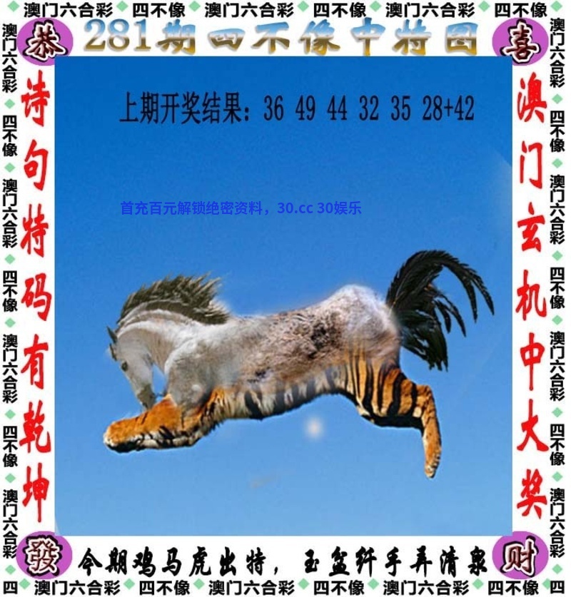 281期七肖 | 猪狗猴羊鼠牛马 | 開:羊47 |
