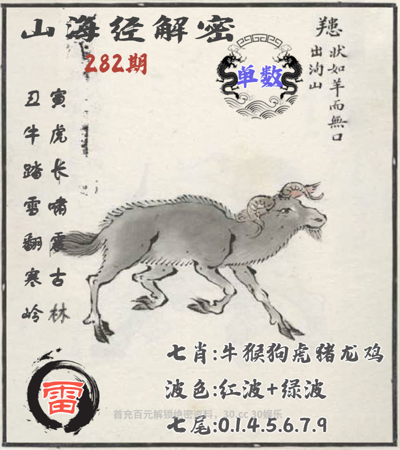 281期:🎼绝杀二尾🎼【5.8尾】开:羊47准