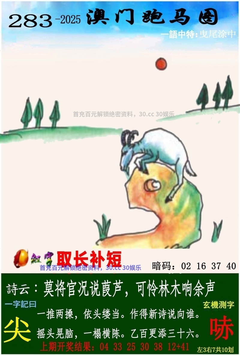 283期:开奖时间2025年10月10(星期五)晚9:30开(农历八月十九 鼠冲马)